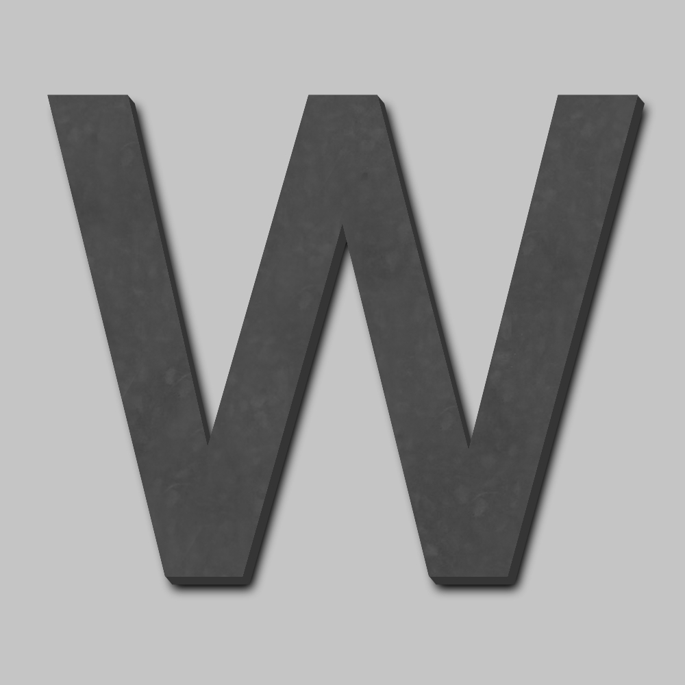 Deze robuuste driedimensionale letter W is 170 mm hoog en 25 mm dik. Leverbaar in meerdere kleuren. Voorzien van geïntegreerde, blinde, montagevoorziening.